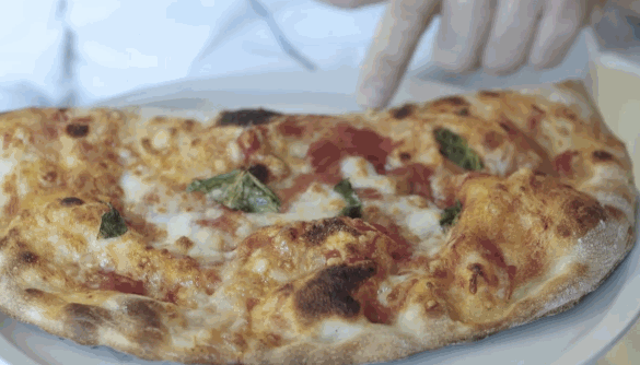 半月披萨和传统披萨,饼皮口感与传统意式披萨一样筋道,烤炉烤焦的地方闻起来诱人,咬下去松脆;物料料丰富,一口下去香喷喷热腾腾,满满都是幸福。