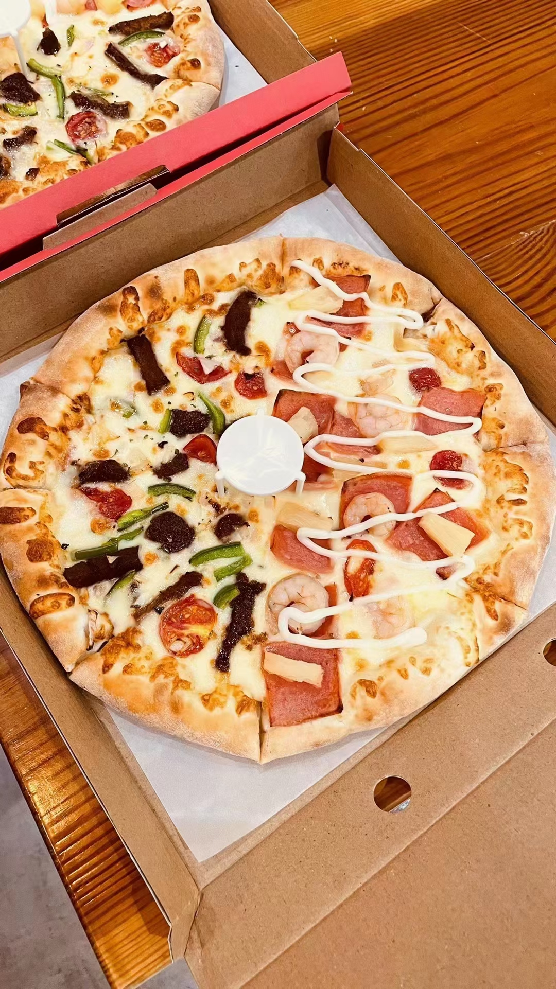 牛排披萨可以组合成任意双拼披萨。
